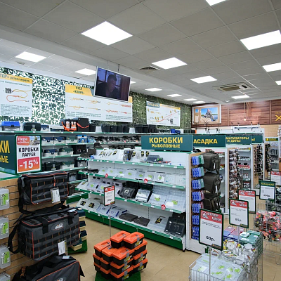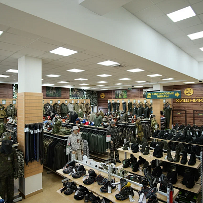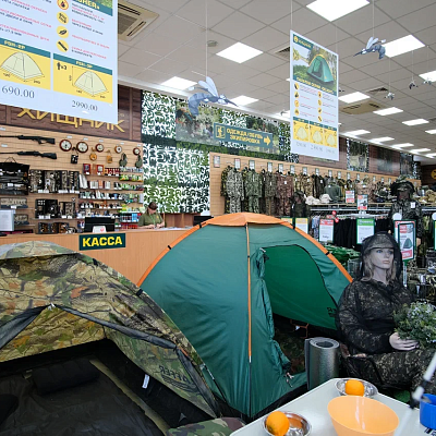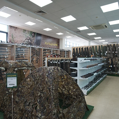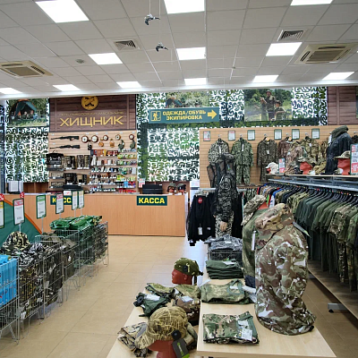 Самый большой, топовый магазин Хищник. Расположен на проспекте Жукова, в 5 мин. от центра г. Волгограда. В магазине представлен максимальный ассортимент товаров для рыбалки, туризма и активного отдыха.